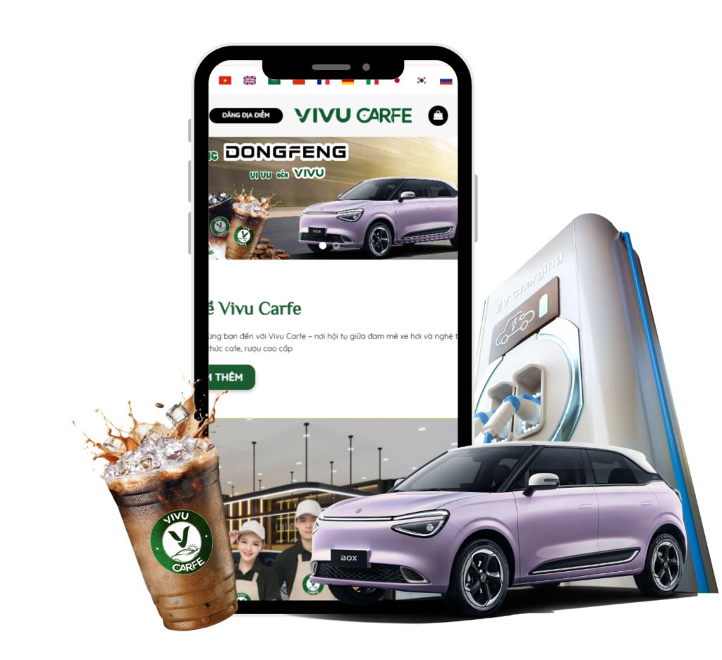 ViVu Carfe là mô hình kết hợp giữa Showroom, trạm sạc xe điện và quán Cà phê. Đây không chỉ là nơi trưng bày xe mà còn là không gian gặp gỡ, thư giãn, nơi khách hàng có thể trải nghiệm sản phẩm, trao đổi thông tin